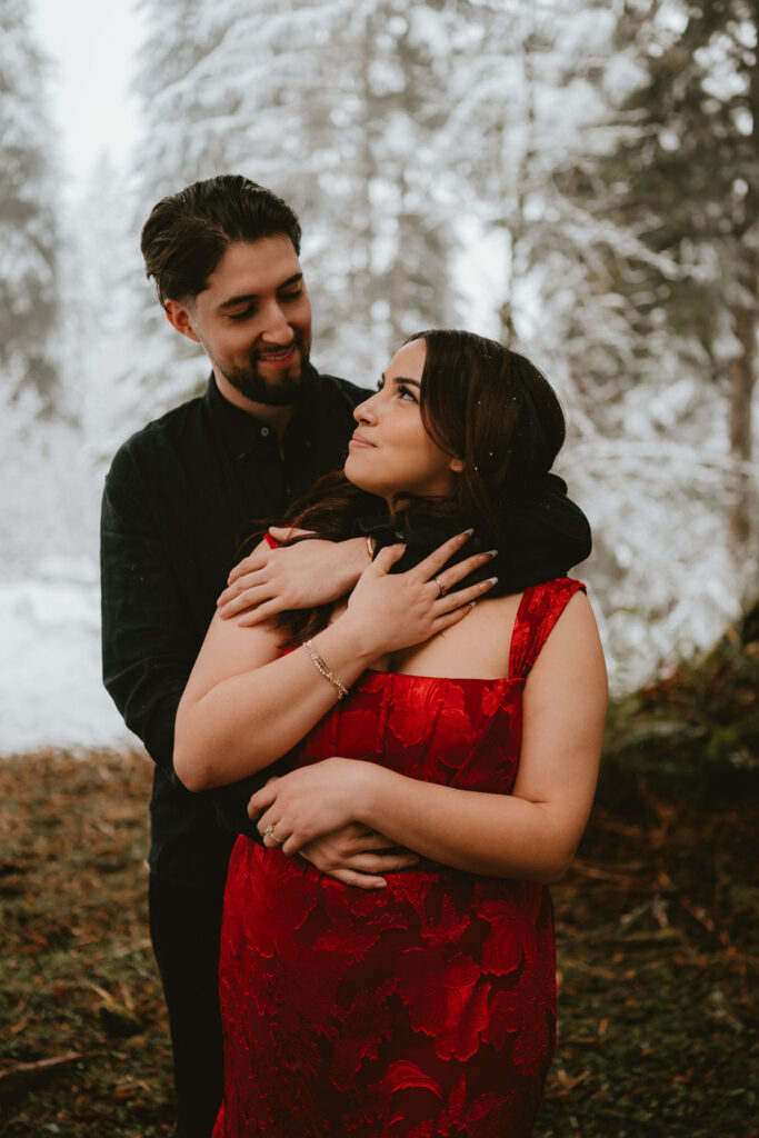 The next morning, we all drove back to Portland together since we had the same flight back to Vegas. While driving on Highway 26, it started snowing. Mary casually asked if we could stop for photos. Obviously we said yes!! She changed outfits in the car and we shot on the side of the road in falling snow. Those photos still blow my mind.